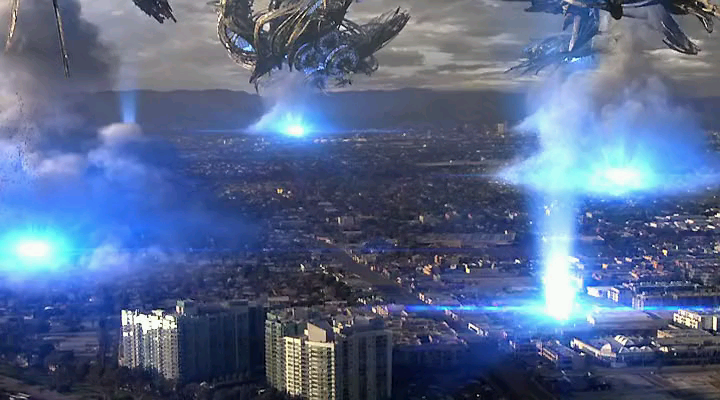 Ed è proprio durante la notte che (una volta chiuse le persiane e finiti tutti a letto) si scatena quello che darà inizio al vero e proprio scenario apocalittico/da paùra: la discesa degli alieni sul pianeta(a quanto pare vengono attaccate in contemporanea mondiale tutte le città del mondo).